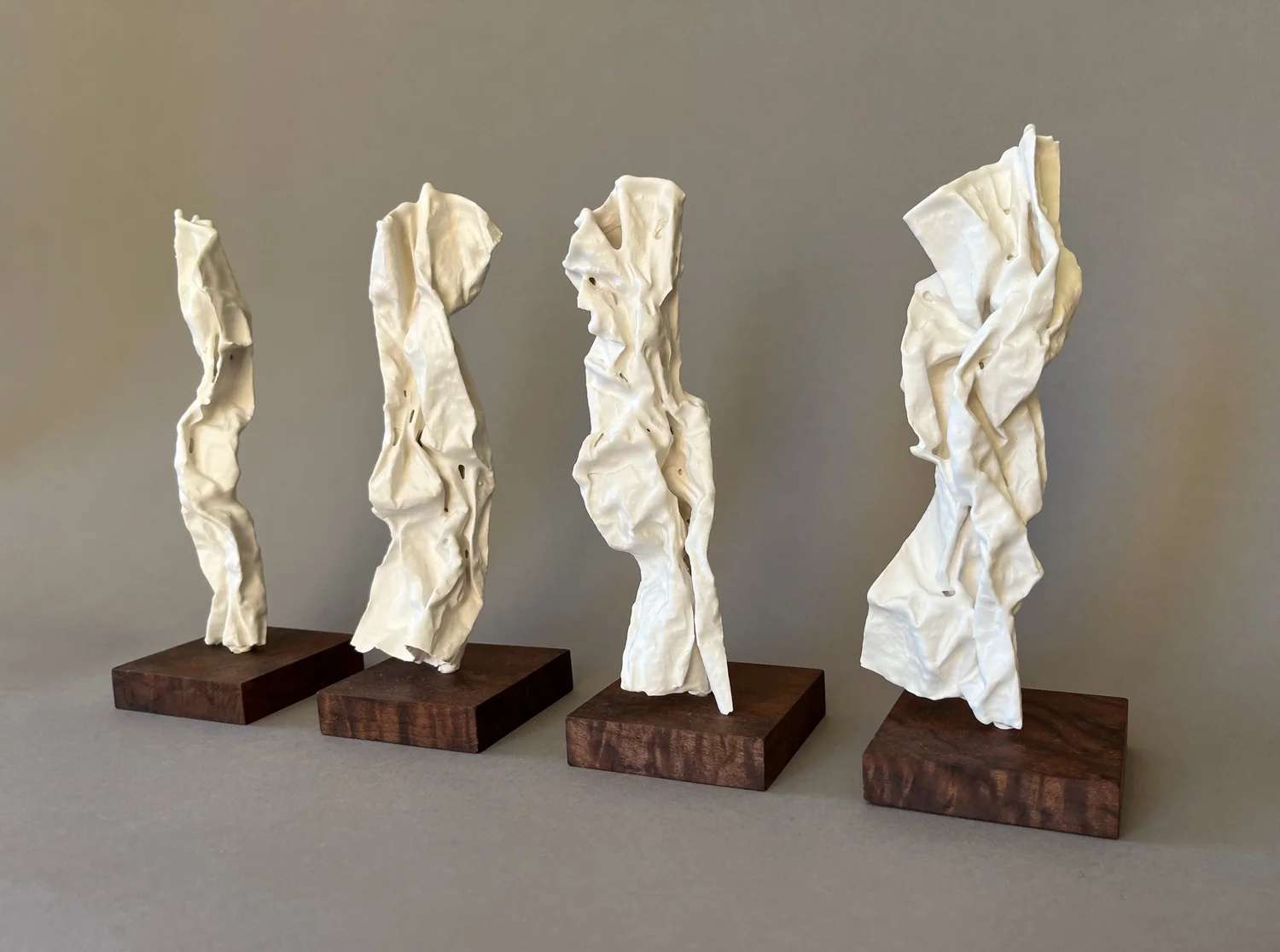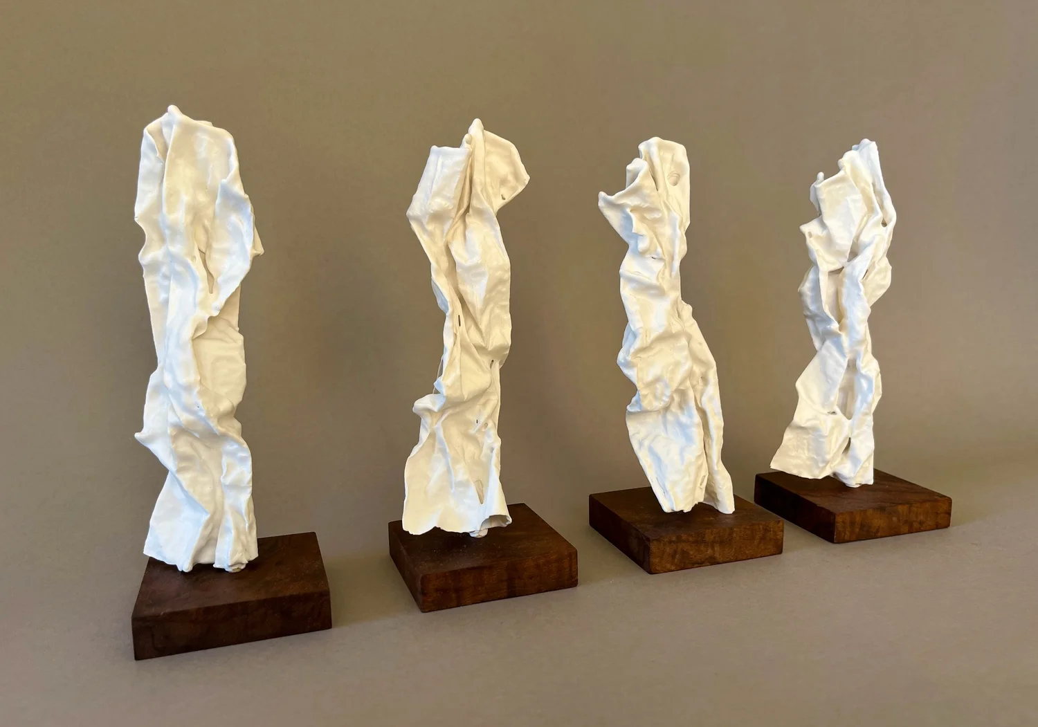 Abstract sculptures and wall art from reclaimed wood and plaster